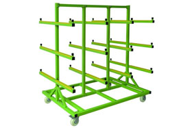 紗網片存放車 紗網片存放車也是屬于一種周轉車,但主要是用于存放紗網片這類物料的,可以用來臨時周轉,也可以用于長期存放: 產品特點 1.立式插入式...